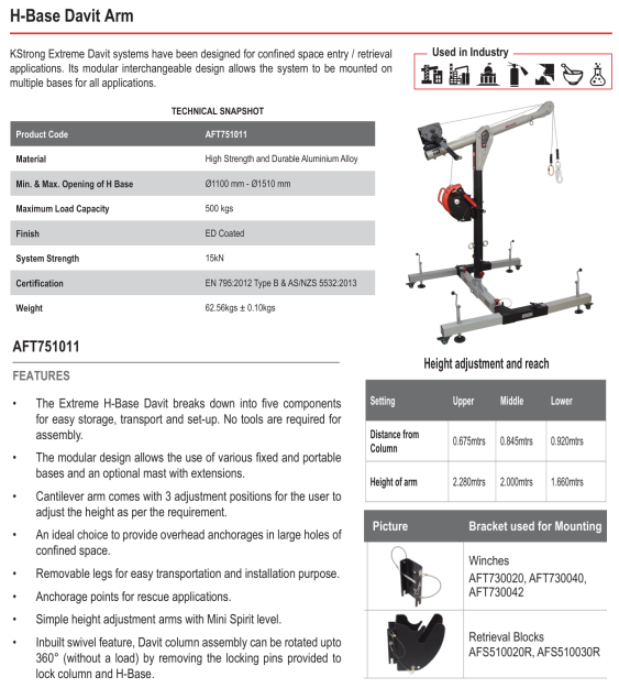 H-Base Davit Arm